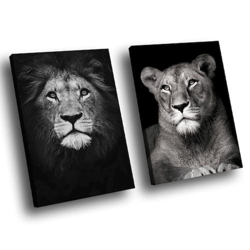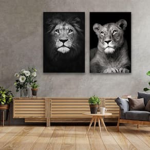 Acompanha o produto: - QUADRO DECORATIVO DUPLA LEÃO E LEOA Garantia: - 90 Dias