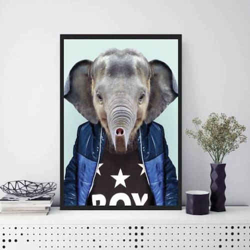 Quadro decorativo elefante fashion 33x24cm Moldura: madeira preta Informações do produto tire todas as suas dúvidas no descritivo abaixo: decoração para quarto, sala, cozinha, escritório, área gourmet e muito mais. Chega de paredes vazias medidas - cada peça tem 33x24cm a4 . Material do papel - papel fotográfico brilhante de altíssima resolução acabamento - todos os quadros são acompanhados de uma película de acetato para proteção da imagem. - moldura em madeira maciça na cor preta e pendurador móvel que pode ser retirado facilmente caso deseje fixar com fita dupla face. - os quadros são embalados de forma segura com plástico bolha com camada dupla de acordo com o tamanho dos quadros.