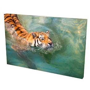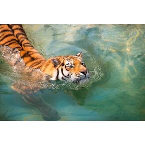 Quadro Decorativo em Tela com Borda Infinita Tigre Nadando