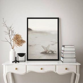 Quadro decorativo estrela do mar branca 45x34cm Moldura: madeira branca Informações do produto tire todas as suas dúvidas no descritivo abaixo: decoração para quarto, sala, cozinha, escritório, área gourmet e muito mais. Chega de paredes vazias. Medidas - cada peça tem 45x34cm a3 . Material do papel - papel fotográfico brilhante de altíssima resolução acabamento - todos os quadros são acompanhados de uma película de acetato para proteção da imagem. - os quadros são embalados de forma segura com plástico bolha com camada dupla de acordo com o tamanho dos quadros. Garantia - garantia de 3 meses. Meu quadro chegou. Como posso fixá-lo Você precisa apenas de um martelo e um prego, pois os quadros já vão acompanhados de penduradores. Esta é a forma mais indicada. Caso prefira, você pode utilizar uma fita dupla face neste caso, sugerimos de alta qualidade para evitar que descole e seu quadro caia . Como posso limpar meu quadro A limpeza é feita como um móvel comum da sua casa. Apenas um pano seco ou espanador são suficientes para tal Ean: 7893855242847