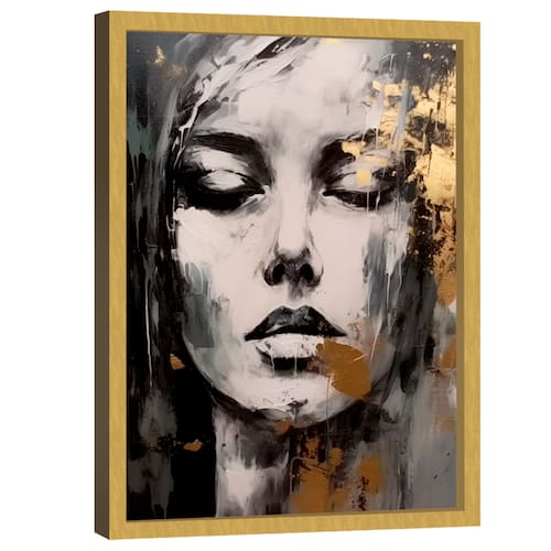 Quadro Decorativo Expressão Feminina Moldura Dourada - 84x54cm -