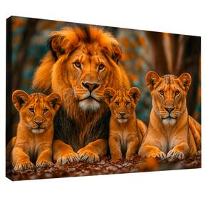 Quadro Decorativo Família De Leões Centrada Moldura Dourada - 118x78cm -