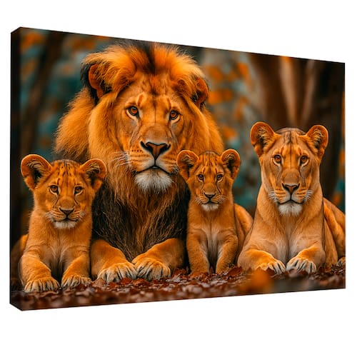 Quadro Decorativo Família De Leões Centrada Borda Infinita - 60x40cm -