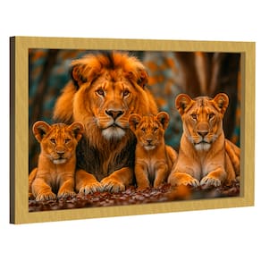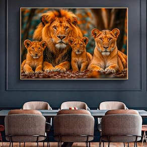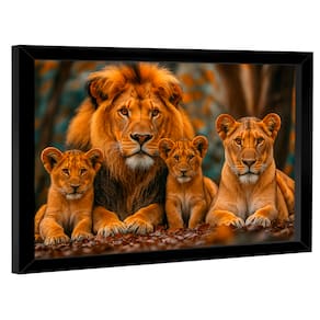 Quadro Decorativo Família De Leões Centrada Moldura Preta - 150x100cm -