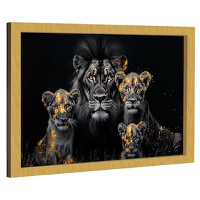 Quadro Decorativo Família de Leões Dark Moldura Preta e Vidro - 180x105cm -