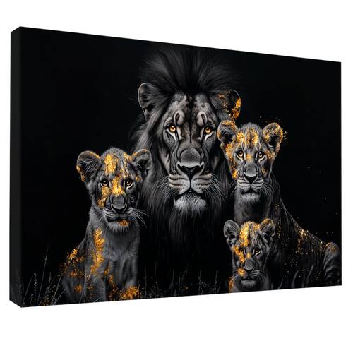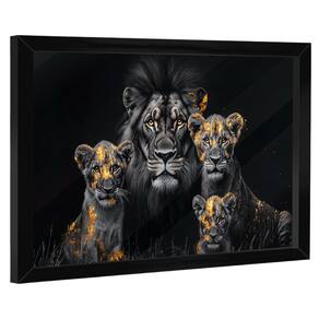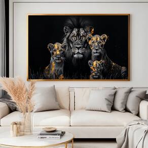Quadro Decorativo Família de Leões Dark Borda Infinita - 118x78cm -