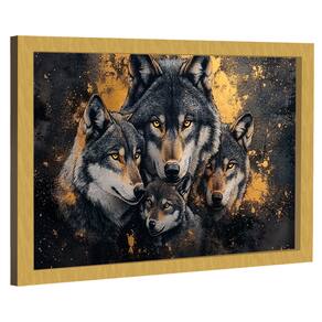 Quadro Decorativo Família de Lobos Moldura Preta - 118x78cm -