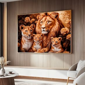 Quadro Decorativo Família Felina Moldura Dourada - 60x40cm -