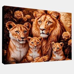 Quadro Decorativo Família Felina Quadro Decorativo Família Felina Moldura Dourada - 118x78cm - Especificações