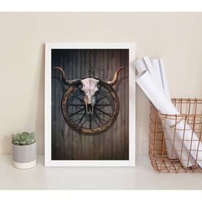 Quadro decorativo faroeste- crânio boi 33x24cm - com vidro Moldura: madeira branca Informações do produto tire todas as suas dúvidas no descritivo abaixo: decoração para quarto, sala, cozinha, escritório, área gourmet e muito mais. Chega de paredes vazias medidas - cada peça tem 33x24cm a4 . Material do papel - papel fotográfico brilhante de altíssima resolução acabamento - todos os quadros são acompanhados de vidro para proteção da imagem. - moldura em madeira maciça na cor preta ou branca conforme produto escolhido e pendurador . - os quadros são embalados de forma segura com plástico bolha com camada dupla de acordo com o tamanho dos quadros. Garantia - garantia de 3 meses. Meu quadro chegou. Como posso fixá-lo Você precisa apenas de um martelo e um prego, pois os quadros já vão acompanhados de penduradores. Esta é a forma mais indicada. Como posso limpar meu quadro A limpeza é feita como um móvel comum da sua casa. Apenas um pano seco ou espanador são suficientes para tal Ean: 7890622543213