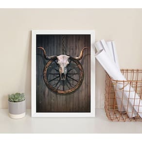 Quadro decorativo faroeste- crânio boi 45x34cm Moldura: madeira branca Informações do produto tire todas as suas dúvidas no descritivo abaixo: decoração para quarto, sala, cozinha, escritório, área gourmet e muito mais. Chega de paredes vazias. Medidas - cada peça tem 45x34cm a3 . Material do papel - papel fotográfico brilhante de altíssima resolução acabamento - todos os quadros são acompanhados de uma película de acetato para proteção da imagem. - os quadros são embalados de forma segura com plástico bolha com camada dupla de acordo com o tamanho dos quadros. Garantia - garantia de 3 meses. Meu quadro chegou. Como posso fixá-lo Você precisa apenas de um martelo e um prego, pois os quadros já vão acompanhados de penduradores. Esta é a forma mais indicada. Caso prefira, você pode utilizar uma fita dupla face neste caso, sugerimos de alta qualidade para evitar que descole e seu quadro caia . Como posso limpar meu quadro A limpeza é feita como um móvel comum da sua casa. Apenas um pano seco ou espanador são suficientes para tal Ean: 7897942157328