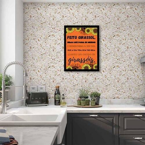 Quadro Decorativo Feito Girassol - Tamanho: A4 (20 x 30) / Acabamento: Película de acetato / Moldura: Madeira preta