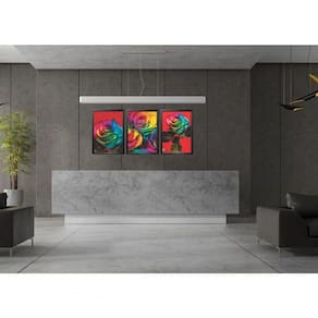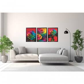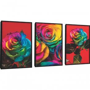 Quadro Decorativo Flor Colorido Fundo Vermelho Com Moldura Preto