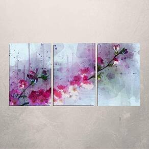 Quadro Decorativo Flor De Cerejeira Aquarela 3 Tela 120X60Cm