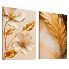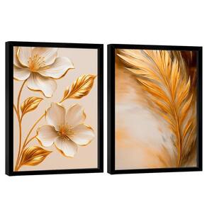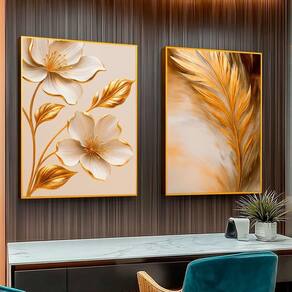 Quadro Decorativo Flor e Folha Dourada Duo Moldura Dourada - 118x78cm -
