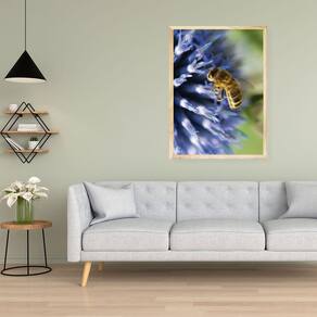 Quadro Decorativo Floral Azul Plantas Jardim Abelha Natureza