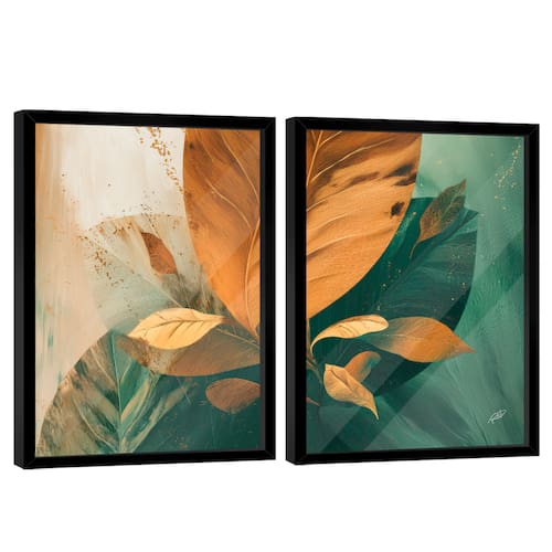 Quadro Decorativo Floral Moderno Duo Moldura Preta e Vidro - 180x105 -