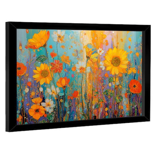 Quadro Decorativo Floral Moldura Preta - 84x54cm -