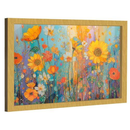 Quadro Decorativo Floral Moldura Dourada e Vidro - 118x78cm -