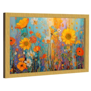 Quadro Decorativo Floral Moldura Preta e Vidro - 84x54cm -