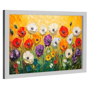 Quadro Decorativo Flores Abstratas Coloridas Moldura Branca - 118x78cm -