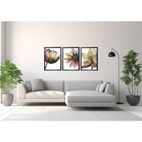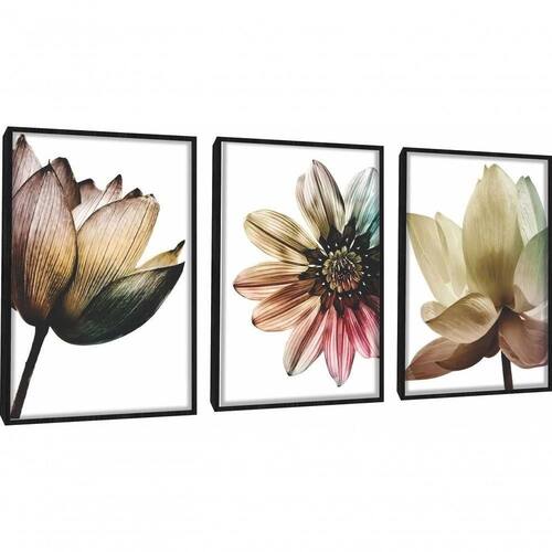 Quadro Decorativo Flores Colorido Com Moldura Preto
