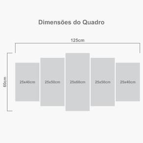 Os quadros decorativos são uma excelente ideia para decorar o seu cantinho Ou até mesmo presentear aquela pessoa muito especial para você. Decorar é sempre um momento muito incrível, de um simples toque e mude totalmente o visual do seu ambiente. Especificações: Tamanho total do produto: 125x60 cm Comprimento x Altura 02 Peças menores: 25x40 cm 02 Peças Médias: 25x50 cm 01 Peça Central: 25x60 cm. Espaçamento entre as peças de 1 cm - Tamanho total com espaçamentos 129x60 cm. Espessura do produto - 9 mm