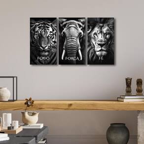 Quadro Decorativo Foco Força Fé Tigre Elefante Leão Animais Desenho: Animais Transforme o ambiente da sua casa ou escritório com nosso Quadro Triplo Decorativo de alta qualidade. Este conjunto impressionante é produzido utilizando a mais avançada tecnologia de impressão e corte a laser, garantindo detalhes nítidos e precisos que capturam a essência de qualquer imagem ou design. Características: Impressão de Alta Qualidade: Nossos quadros apresentam uma impressão de alta definição que realça cores vibrantes e detalhes minuciosos, proporcionando uma estética visualmente deslumbrante. Corte a Laser: O corte a laser oferece um acabamento perfeito e preciso, destacando contornos e formas de maneira impecável. Esta técnica também assegura bordas limpas e uniformes, valorizando ainda mais a elegância do quadro. Material Durável: Produzidos em chapa de MDF de 3 mm, os quadros são leves, resistentes e duráveis, garantindo uma longa vida útil e fácil manuseio. O MDF é um material sustentável que proporciona uma superfície lisa e uniforme para a impressão. Design Versátil: Composto por três partes que podem ser dispostas de diversas maneiras, este quadro triplo se adapta a diferentes estilos de decoração, seja moderno, clássico, minimalista ou contemporâneo. Fácil Instalação: Cada quadro vem com fita dupla face prontos para utilizar, permitindo uma instalação rápida e sem complicações. Adicione um toque de sofisticação e personalidade ao seu espaço com o nosso Quadro Triplo Decorativo. Ideal para salas de estar, quartos, escritórios e qualquer ambiente que necessite de um toque artístico e elegante.