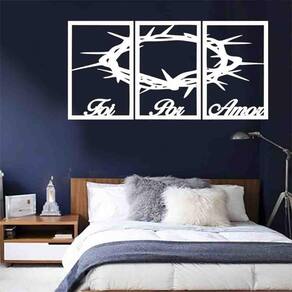 Quadro Decorativo Foi Por Amor Branco 3Mm Vazado - Mdf TAMANHO & INSTALAÇÃO: Tamanho total: 122cm comprimento X 60cm altura Com espaçamento recomendado de 1 cm entre peças, Peças laterais: 40x60 cm | Peça central: 40x60 cm Espaçamento entre as peças: 1 cm A instalação é bem simples, não será preciso fazer sujeira furando a parede pois utilizamos o método bem prático para instalar, contém fita dupla face 3M no verso do quadro. LIMPEZA DO PRODUTO Para limpeza, utilize apenas um pano umedecido com água sem produtos químicos para garantir a durabilidade. ACABAMENTO Nossos produtos são fabricados em MDF com espessura de 6mm cortados a laser. Desta forma terá um produto com acabamento de alta qualidade. Bordas/laterais serão na cor preta feito com a própria máquina de corte a laser, dando acabamento perfeito. GARANTIA / EMBALAGEM Embalagem reforçada e segura para que receba seu produto em perfeito estado. Garantia de produto de qualidade ou seu dinheiro de volta.