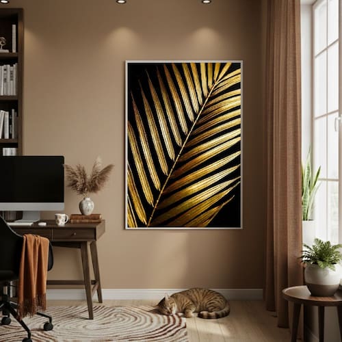 Quadro Decorativo Folha Dourada 70x50cm Mold Branca