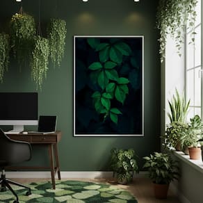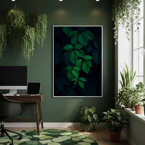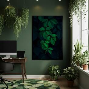 Quadro Decorativo Folhagem Escura 70x50cm Mold Branca