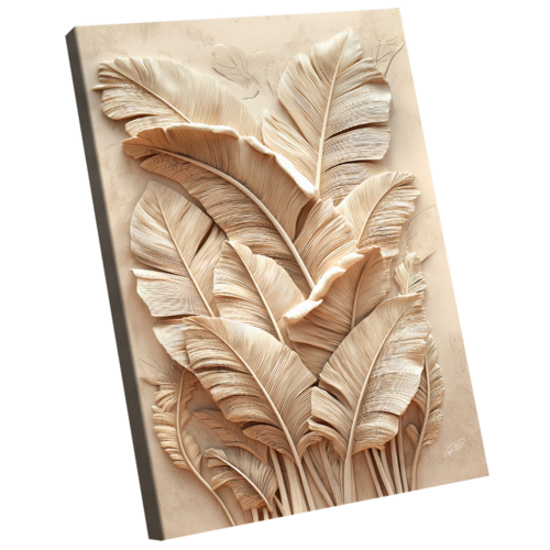 Quadro Decorativo Folhas 3D Borda Infinita - 84x54cm -