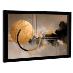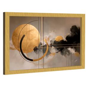 Quadro Decorativo Formas Geométricas Tons Dourados Moldura Preta - 118x78cm -
