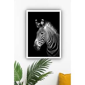 Quadro Decorativo Foto Zebra - 70x50cm - Cor: Moldura Branca