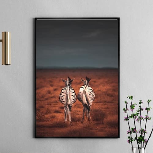 Quadro decorativo fotografia casal zebras 45x34cm Moldura: madeira branca Informações do produto tire todas as suas dúvidas no descritivo abaixo: decoração para quarto, sala, cozinha, escritório, área gourmet e muito mais. Chega de paredes vazias. Medidas - cada peça tem 45x34cm a3 . Material do papel - papel fotográfico brilhante de altíssima resolução acabamento - todos os quadros são acompanhados de uma película de acetato para proteção da imagem. - os quadros são embalados de forma segura com plástico bolha com camada dupla de acordo com o tamanho dos quadros. Garantia - garantia de 3 meses. Meu quadro chegou. Como posso fixá-lo Você precisa apenas de um martelo e um prego, pois os quadros já vão acompanhados de penduradores. Esta é a forma mais indicada. Caso prefira, você pode utilizar uma fita dupla face neste caso, sugerimos de alta qualidade para evitar que descole e seu quadro caia . Como posso limpar meu quadro A limpeza é feita como um móvel comum da sua casa. Apenas um pano seco ou espanador são suficientes para tal