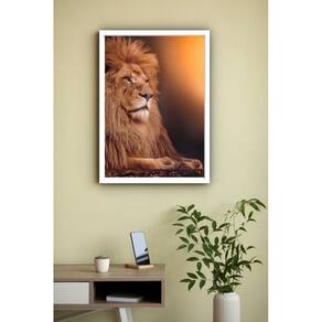 Quadro decorativo fotografia leão sol - 70x50cm Cor: moldura branca Informações do produto tire todas as suas dúvidas no descritivo abaixo: decoração para quarto, sala, cozinha, escritório, área gourmet e muito mais. Chega de paredes vazias medidas - cada peça tem 70x50cm . Material do papel - papel fotográfico brilhante de altíssima resolução acabamento - todos os quadros são acompanhados de vidro para proteção da imagem. - moldura em madeira maciça na cor preta ou branca conforme produto escolhido e pendurador. - os quadros são embalados de forma segura com plástico bolha com camada dupla de acordo com o tamanho dos quadros. - de 3 meses. Meu quadro chegou. Como posso fixá-lo Você precisa apenas de um martelo e um prego, pois os quadros já vão acompanhados de penduradores. Esta é a forma mais indicada. Como posso limpar meu quadro A limpeza é feita como um móvel comum da sua casa. Apenas um pano seco ou espanador são suficientes para tal Marca: Não Informado