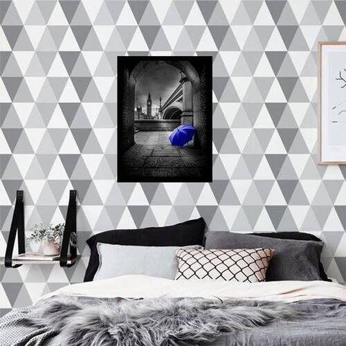 Quadro Decorativo Fotografia Sombrinha Azul - Tamanho: A4 (20 x 30) / Acabamento: Película de acetato / Moldura: Madeira preta
