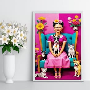 Quadro decorativo frida com cães e gatos 33x24cm Cor: moldura preta Informações do produto tire todas as suas dúvidas no descritivo abaixo: decoração para quarto, sala, cozinha, escritório, área gourmet e muito mais. Chega de paredes vazias medidas - cada peça tem 33x24cm a4 . Material do papel - papel fotográfico brilhante de altíssima resolução acabamento - todos os quadros são acompanhados de uma película de acetato para proteção da imagem. - os quadros são embalados de forma segura com plástico bolha com camada dupla de acordo com o tamanho dos quadros. Garantia - garantia de 3 meses. Meu quadro chegou. Como posso fixá-lo Você precisa apenas de um martelo e um prego, pois os quadros já vão acompanhados de penduradores. Esta é a forma mais indicada. Caso prefira, você pode utilizar uma fita dupla face neste caso, sugerimos de alta qualidade para evitar que descole e seu quadro caia . Como posso limpar meu quadro A limpeza é feita como um móvel comum da sua casa. Apenas um pano seco ou espanador são suficientes para tal Ean: 7891234532558