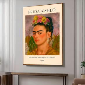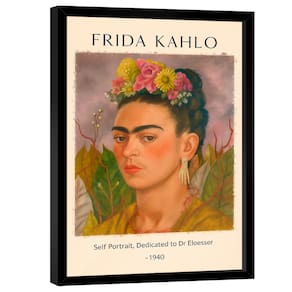 Quadro Decorativo Frida Kahlo Self Portrait, Dedicated to Dr Eloesser Moldura Preta e Vidro - 150x100cm -