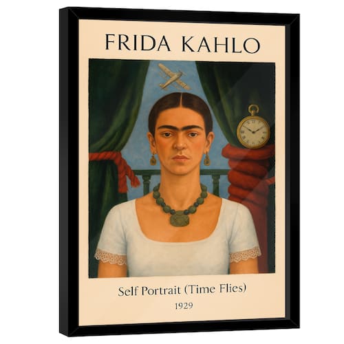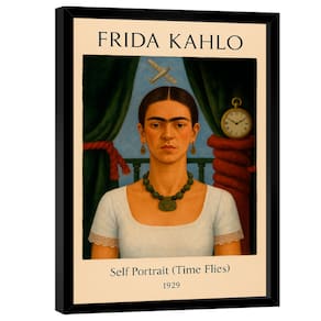 Quadro Decorativo Frida Kahlo Self Portrait, Time Flies Moldura Preta e Vidro - 84x54cm -