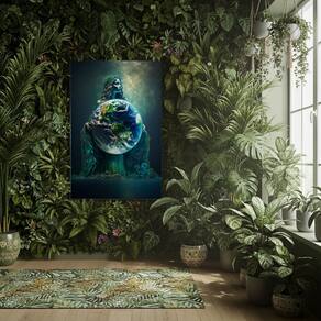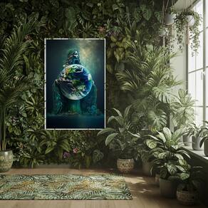 Quadro Decorativo Gaia Mãe Terra - 70x50cm - Cor: Moldura Branca