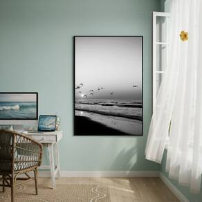 Quadro Decorativo Gaivotas Do Litoral-70x50cm - Cor: Moldura Preta