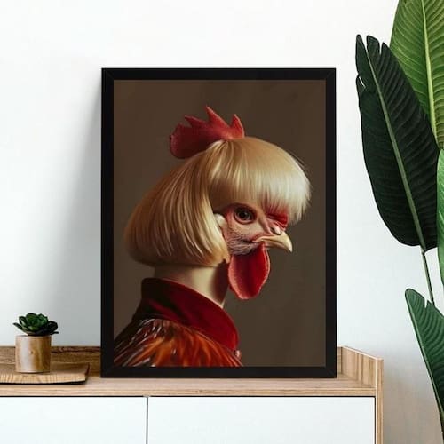 Quadro Decorativo Galinha Disfarçada 33X24Cm - Com Vidro