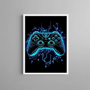 Quadro decorativo gamer azul neon 24x18cm Cor: moldura preta Informações do produto tire todas as suas dúvidas no descritivo abaixo: decoração para quarto, sala, cozinha, escritório, área gourmet e muito mais. Chega de paredes vazias medidas - cada peça tem 24x18cm a5 . Material do papel - papel fotográfico brilhante de altíssima resolução acabamento - todos os quadros são acompanhados de uma película de acetato para proteção da imagem. - os quadros são embalados de forma segura com plástico bolha com camada dupla de acordo com o tamanho dos quadros. - de 3 meses. Meu quadro chegou. Como posso fixá-lo Você precisa apenas de um martelo e um prego, pois os quadros já vão acompanhados de penduradores. Esta é a forma mais indicada. Caso prefira, você pode utilizar uma fita dupla face neste caso, sugerimos de alta qualidade para evitar que descole e seu quadro caia . Como posso limpar meu quadro A limpeza é feita como um móvel comum da sua casa. Apenas um pano seco ou espanador são suficientes para tal Ean: 7891234532596