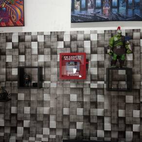 Quadro decorativo Em caso de nostalgia quebre o vidro Com uma arte que fará toda a diferença na hora de presentear quem você gosta, feito em mdf e pvc, sem duvida um excelente presente. Não perca essa oportunidade de levar para casa esse lindo produto