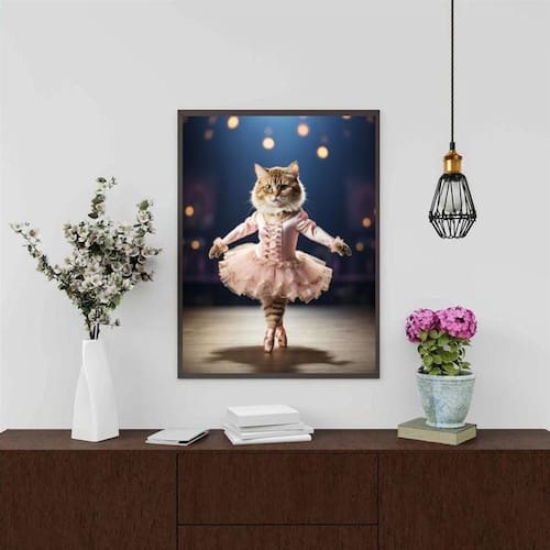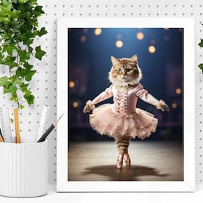 Quadro decorativo gatinha bailarina 33x24cm Cor: moldura branca Informações do produto tire todas as suas dúvidas no descritivo abaixo: decoração para quarto, sala, cozinha, escritório, área gourmet e muito mais. Chega de paredes vazias medidas - cada peça tem 33x24cm a4 . Material do papel - papel fotográfico brilhante de altíssima resolução acabamento - todos os quadros são acompanhados de uma película de acetato para proteção da imagem. - os quadros são embalados de forma segura com plástico bolha com camada dupla de acordo com o tamanho dos quadros. Garantia - garantia de 3 meses. Meu quadro chegou. Como posso fixá-lo Você precisa apenas de um martelo e um prego, pois os quadros já vão acompanhados de penduradores. Esta é a forma mais indicada. Caso prefira, você pode utilizar uma fita dupla face neste caso, sugerimos de alta qualidade para evitar que descole e seu quadro caia . Como posso limpar meu quadro A limpeza é feita como um móvel comum da sua casa. Apenas um pano seco ou espanador são suficientes para tal Ean: 7891234545824