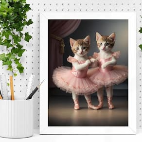 Quadro decorativo gatinhas bailarinas 24x18cm Cor: moldura preta Informações do produto tire todas as suas dúvidas no descritivo abaixo: decoração para quarto, sala, cozinha, escritório, área gourmet e muito mais. Chega de paredes vazias medidas - cada peça tem 24x18cm a5 . Material do papel - papel fotográfico brilhante de altíssima resolução acabamento - todos os quadros são acompanhados de uma película de acetato para proteção da imagem. - os quadros são embalados de forma segura com plástico bolha com camada dupla de acordo com o tamanho dos quadros. Garantia - garantia de 3 meses. Meu quadro chegou. Como posso fixá-lo Você precisa apenas de um martelo e um prego, pois os quadros já vão acompanhados de penduradores. Esta é a forma mais indicada. Caso prefira, você pode utilizar uma fita dupla face neste caso, sugerimos de alta qualidade para evitar que descole e seu quadro caia . Como posso limpar meu quadro A limpeza é feita como um móvel comum da sua casa. Apenas um pano seco ou espanador são suficientes para tal Ean: 7891234545916