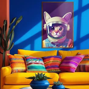 Quadro Decorativo Gato Astronauta Moldura Cx Alta 100x66