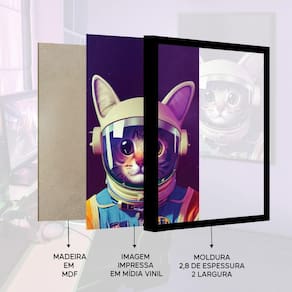 Quadro Decorativo Gato Astronauta Moldura Cx Alta 100x66