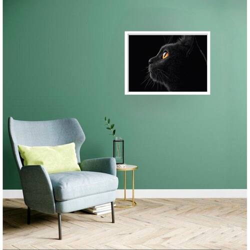 Quadro decorativo gato preto olhar - 50x70cm Cor: moldura preta Informações do produto tire todas as suas dúvidas no descritivo abaixo: decoração para quarto, sala, cozinha, escritório, área gourmet e muito mais. Chega de paredes vazias medidas - cada peça tem 70x50cm . Material do papel - papel fotográfico brilhante de altíssima resolução acabamento - todos os quadros são acompanhados de vidro para proteção da imagem. - moldura em madeira maciça na cor preta ou branca conforme produto escolhido e pendurador. - os quadros são embalados de forma segura com plástico bolha com camada dupla de acordo com o tamanho dos quadros. - de 3 meses. Meu quadro chegou. Como posso fixá-lo Você precisa apenas de um martelo e um prego, pois os quadros já vão acompanhados de penduradores. Esta é a forma mais indicada. Como posso limpar meu quadro A limpeza é feita como um móvel comum da sua casa. Apenas um pano seco ou espanador são suficientes para tal Marca: Não Informado